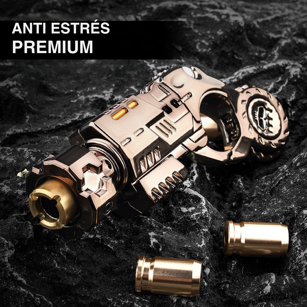 El acabado metálico impone, pero lo mejor está en su función oculta: dispara mini-proyectiles que convierten el estrés en un juego. Preciso, adictivo y diferente.